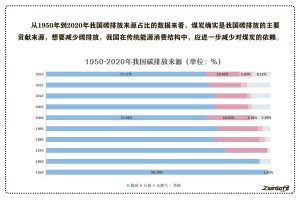 要治理碳排放我們首先想到的就是——煤炭,從1950年到2020年我國碳排放來源占比的數據來看,煤炭確實是我國碳排放的主要來源。