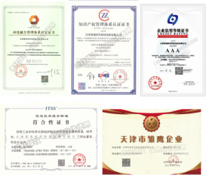 公司產品定位于中高端市場,快速響應客戶需求,及時推出符合實際應用的產品及解決方案,先后獲得CMMI能力成熟度模型集成體系認證、ITSS(三級)運行維護服務能力成熟度模型體系認證、兩化融合管理體系認證、知識產權貫標體系認證;同時我司獲得了國家天津市科技型中小企業認證、天津市市級高新技術企業認證、國家高新技術企業認證、天津市雛鷹企業認證以及多項軟件、專利認證。