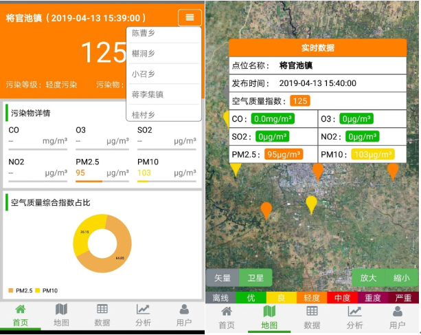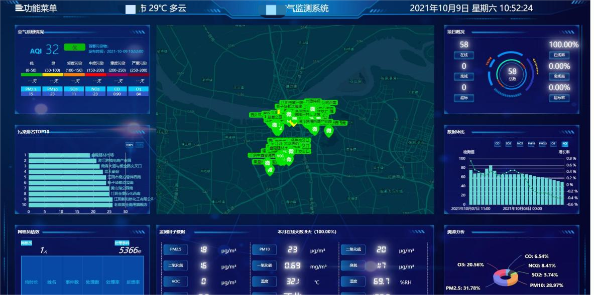 根據(jù)省級行政區(qū)域相應(yīng)布設(shè)微型空氣站,監(jiān)測PM2.5、PM10、SO2、NO2、CO、O3及氣象五參數(shù),用以對行政區(qū)空氣質(zhì)量考評,同時(shí)每日、旬、月發(fā)布各個(gè)區(qū)域空氣質(zhì)量排名(并以短信方式發(fā)送給相關(guān)負(fù)責(zé)人),對空氣質(zhì)量排名落后的網(wǎng)格環(huán)保負(fù)責(zé)人進(jìn)行約談或問責(zé),督促其落實(shí)屬地監(jiān)管責(zé)任。
