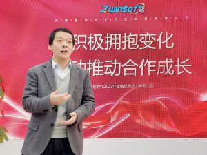 ? ? ? ?智易時代總經理陳濤上臺致辭,提出“積極擁抱變化,主動推動合作成長”的理念,在疫情以及眾多外界因素的影響下,我們的工作環境、工作計劃都有了一定程度的改變,這些變化帶來了挑戰,只有大家主動調整心態,去迎接挑戰,擁抱變化,提升自身的能力,主動尋求合作,讓自己在任何時候都具備競爭力,才能在面對這樣的變化時保持最好的狀態,快速成長。