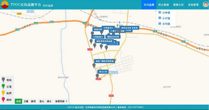 登錄平臺后,可查通過查看實時地圖查看到點位概況以及實時數(shù)據(jù)等信息,點擊監(jiān)測點標注圖標還能查看到數(shù)據(jù)發(fā)布時間、監(jiān)測項目、實時數(shù)據(jù)和監(jiān)測數(shù)據(jù)分析圖等信息;歷史數(shù)據(jù)版塊可查詢到相應(yīng)時間段的監(jiān)測數(shù)值;平臺還具有數(shù)據(jù)分析功能,能夠?qū)ΡO(jiān)測數(shù)據(jù)進行導(dǎo)出存檔,還可對點位信息、用戶信息進行管理……實現(xiàn)監(jiān)測平臺大數(shù)據(jù)化,幫助客戶進行有效數(shù)據(jù)監(jiān)測、提供數(shù)據(jù)分析和合理建議;協(xié)助執(zhí)法機構(gòu)提供執(zhí)法憑證、提高工作效率。