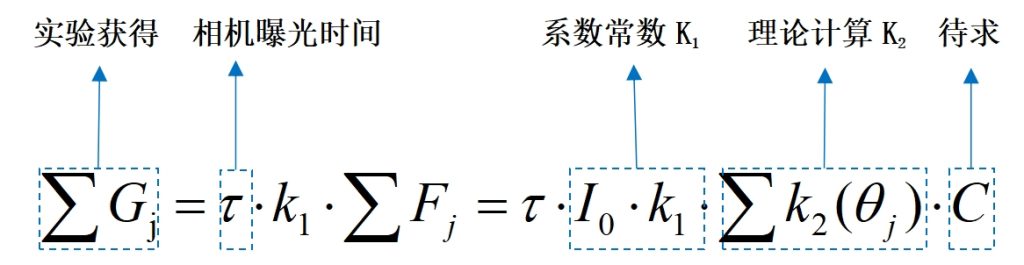 對于光束上所有的散射角,散射光能和相機響應灰度值關系為: